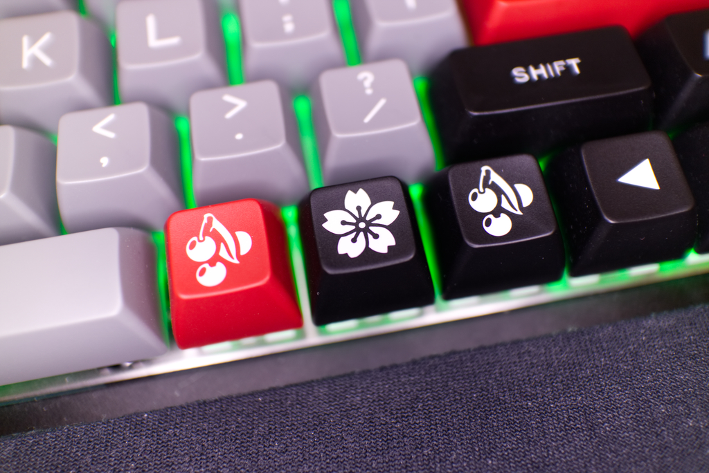 The SA profile is different on each row. We often call this a “sculpted” keycap set. This makes the keys sort of come to meet your fingertips, homing you in on the home row. MaxKey was nice enough to include a few keycaps with flowers and cherry legends, which can be used for any key. However, they only included these for rows 1, 3, and 4. Only one key was a row 4 key. As someone with a 68% keyboard, this was enough for me, but I did have to put the row 4 key upside down to make a row 2 key. I had to do this because I swapped my Delete and `~ keys, so I could more easily find them. I wish they had included more for each row, or perhaps a few blanks, even just a row 2 `~ key. But, this works as well, and it’s not a huge inconvenience. If you have a full keyboard, you’ll be fine, but, if you have a keyboard with an exotic layout, you may have difficulty adding an appropriate keycap to every key.