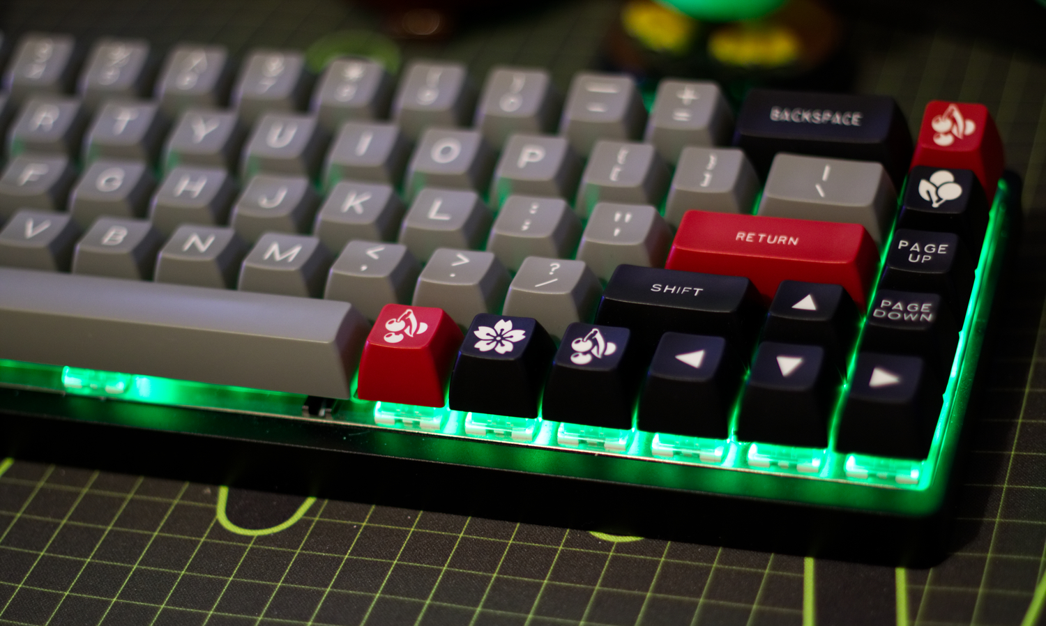 As for the Portland part? That’s just the name of the colorway, the color of the keys. The Portland keycap colorway is one with gray alphas and numbers, black modifiers, and red accents.