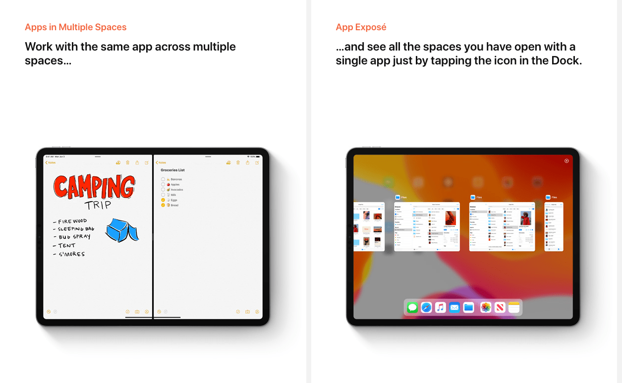 Right now, I have two Firefox windows open. One has three tabs from Apple’s documentation on iPadOS. The other has my editor for the posts I’m working on right now. They’re side by side on my widescreen monitor. You can probably see where this is going. With iPadOS, you will be able to have two windows open for the same app. They’ll be docked, using split screen, but you’ll be able to have two Notes open, two websites, two documents, etc. Obviously this is an extremely useful feature, and it’s surprising we couldn’t do it until now. Many of the iPadOS features fall under that “How did we deal without this?” category.